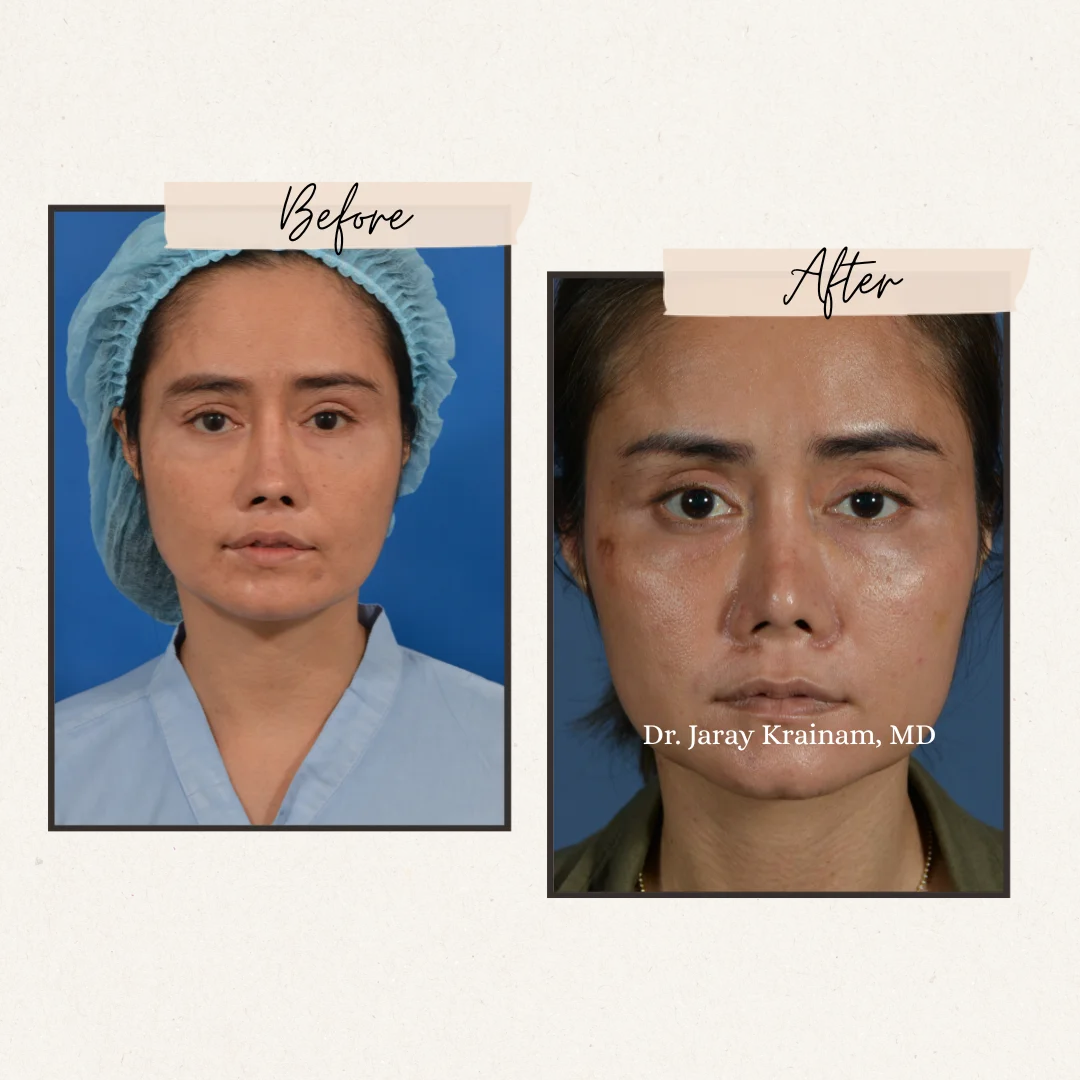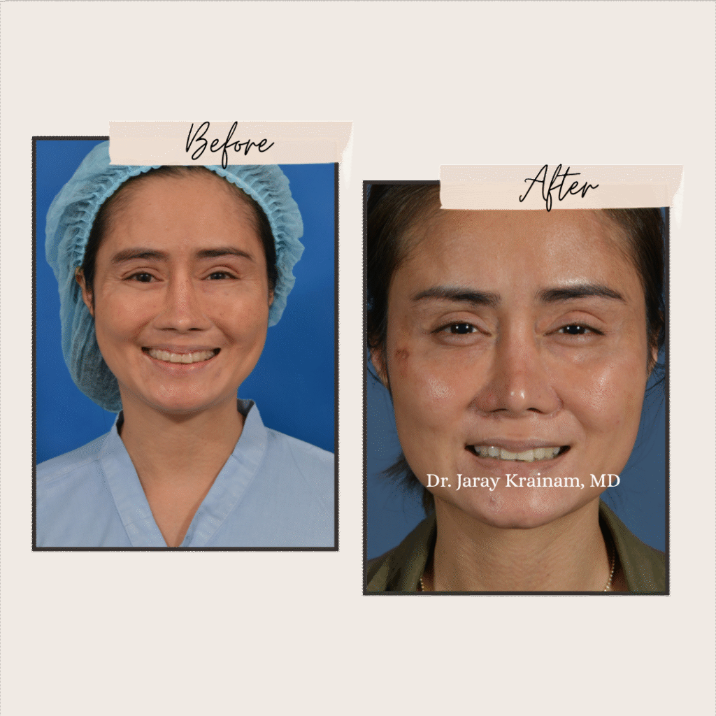 These before-and-after photos feature our patient who underwent a Bullhorn Upper Lip Lift combined with Corner Mouth Lift at Dr. Jaray Cosmetic Surgery in Bangkok, Thailand. Performed by Dr. Jaray Krainam, MD, a highly skilled cosmetic surgeon with over 20 years of experience, this dual procedure enhances lip contour, shortens the philtrum for a lifted appearance, and elevates the mouth corners for a naturally youthful, more refreshed expression. With precise technique and aesthetic understanding, Dr. Jaray delivers results that look elegant, balanced, and harmonious.