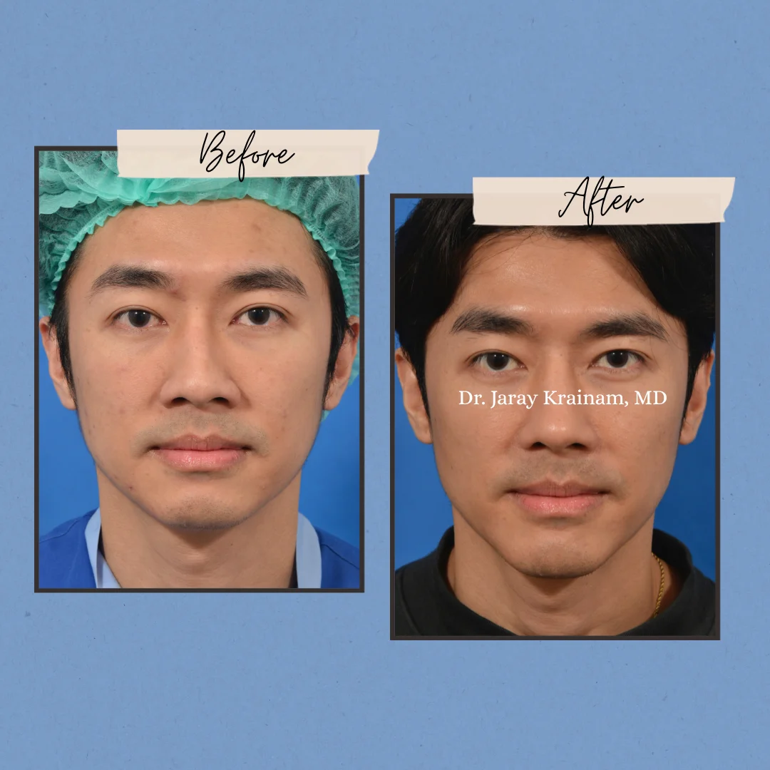 These before-and-after photos highlight the powerful transformation achieved through Male Rhinoplasty Reshaping combined with Chin Bone Surgery, a strategic approach designed to enhance masculine facial definition and profile balance. By refining nasal structure and strengthening chin projection, this advanced procedure creates a sharper jawline, improved facial symmetry, and a more confident, structured appearance. Performed by an expert facial surgeon, the results are natural, proportionate, and long-lasting — tailored specifically to male aesthetics.