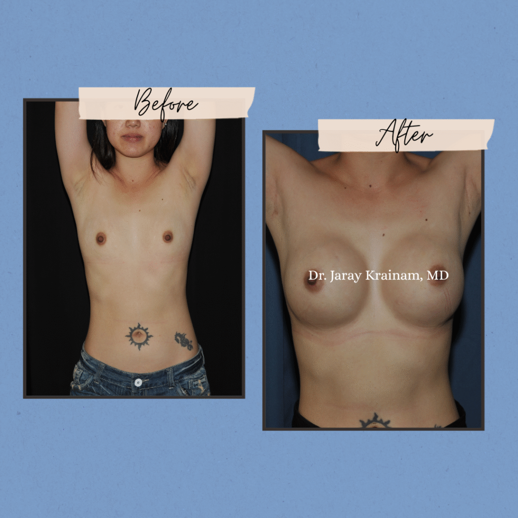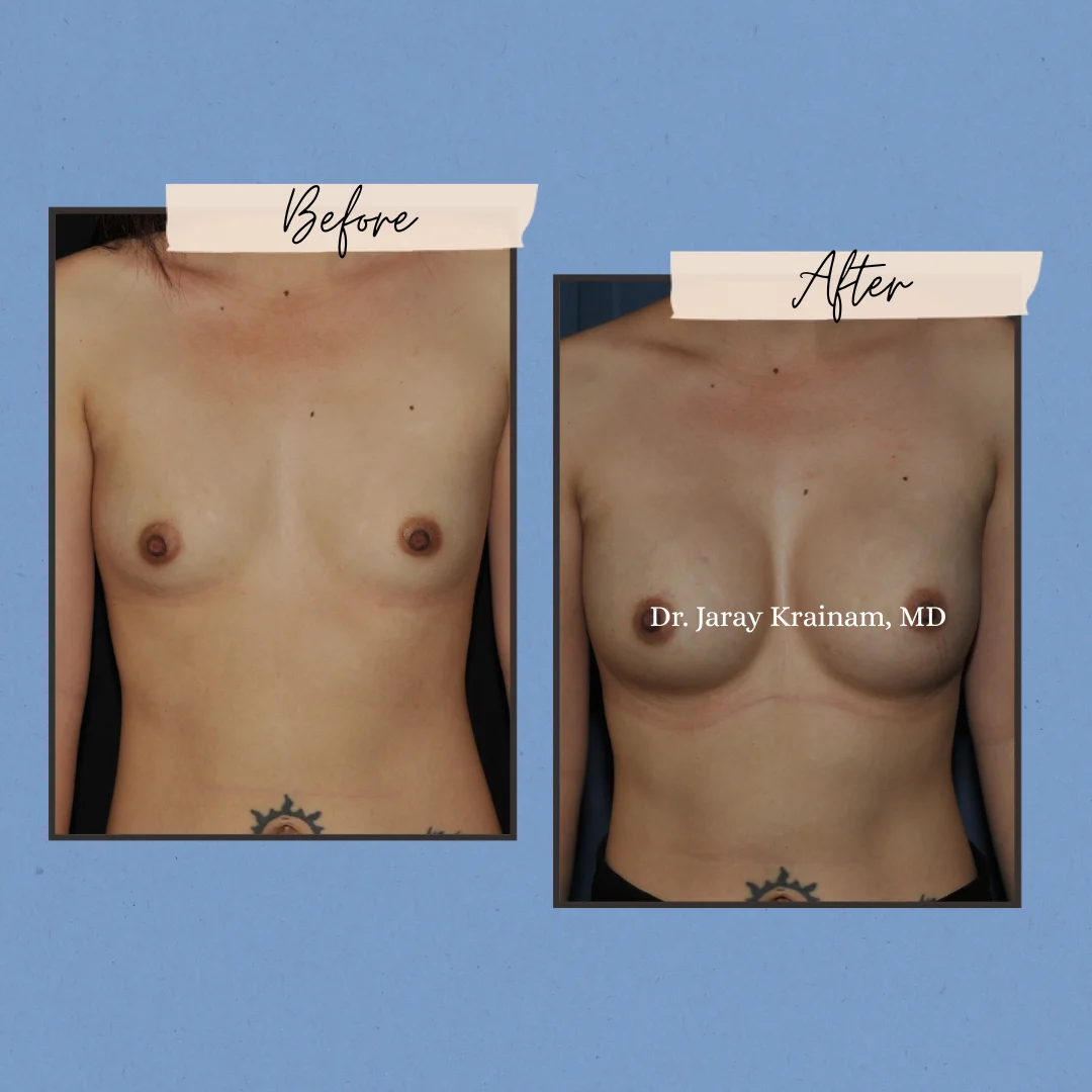 This case showcases our patient who underwent Transaxillary Breast Augmentation, an advanced technique where implants are placed through a discreet incision in the underarm, leaving the breast itself free from visible scars. Performed by an expert surgeon, this approach delivers beautifully enhanced volume, natural contours, and a smooth, symmetrical breast shape while preserving the natural appearance of the breast skin.